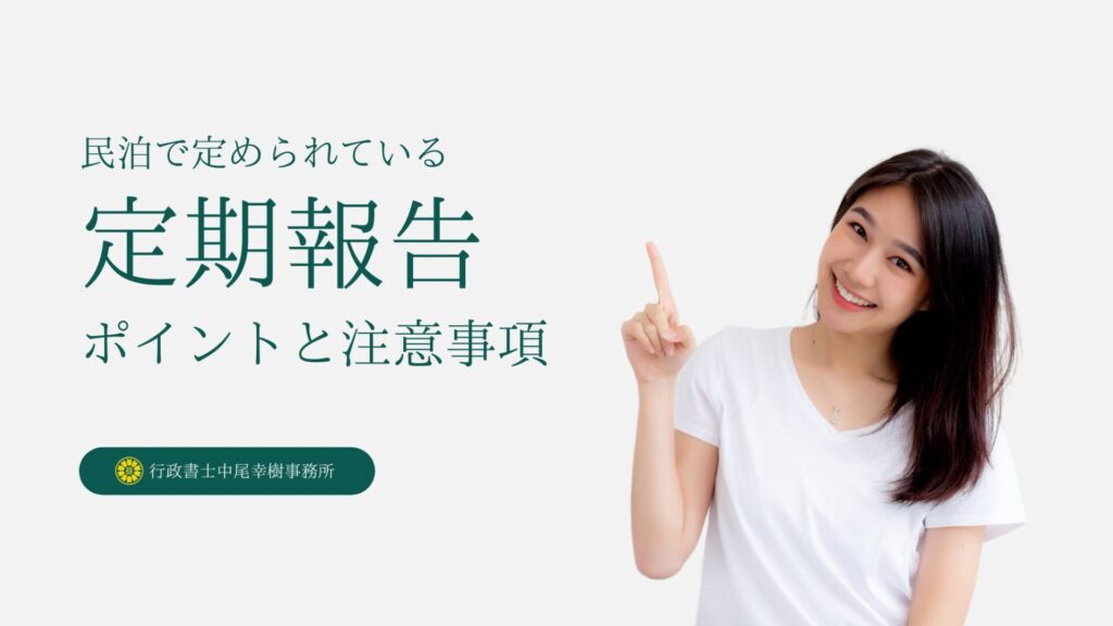 民泊の定期報告は年6回の義務です。報告事項の正しい数え方、報告方法、期限を守るコツを行政書士が解説。鎌倉・葉山・逗子で民泊を運営する方必見の実務ガイド。